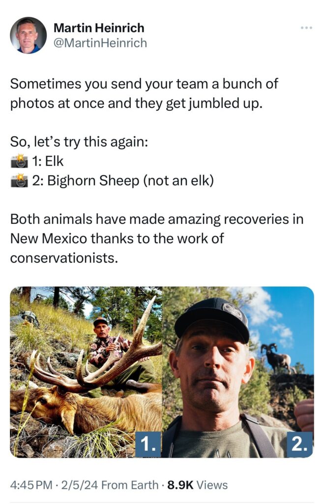 On Sunday, Martin Heinrich posted a photo of an “Elk” on social media.