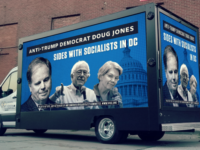 Billboard-On-Wheels Ties Doug Jones To Socialist Presidential Candidates