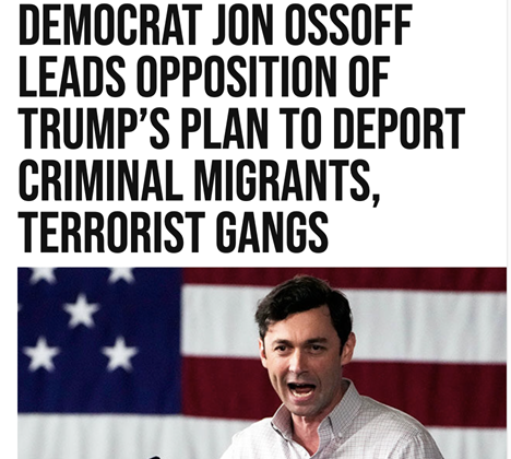 A new report reveals Jon Ossoff’s radical open borders record and how he is leading the charge against President Trump’s plan to deport criminal illegal aliens.